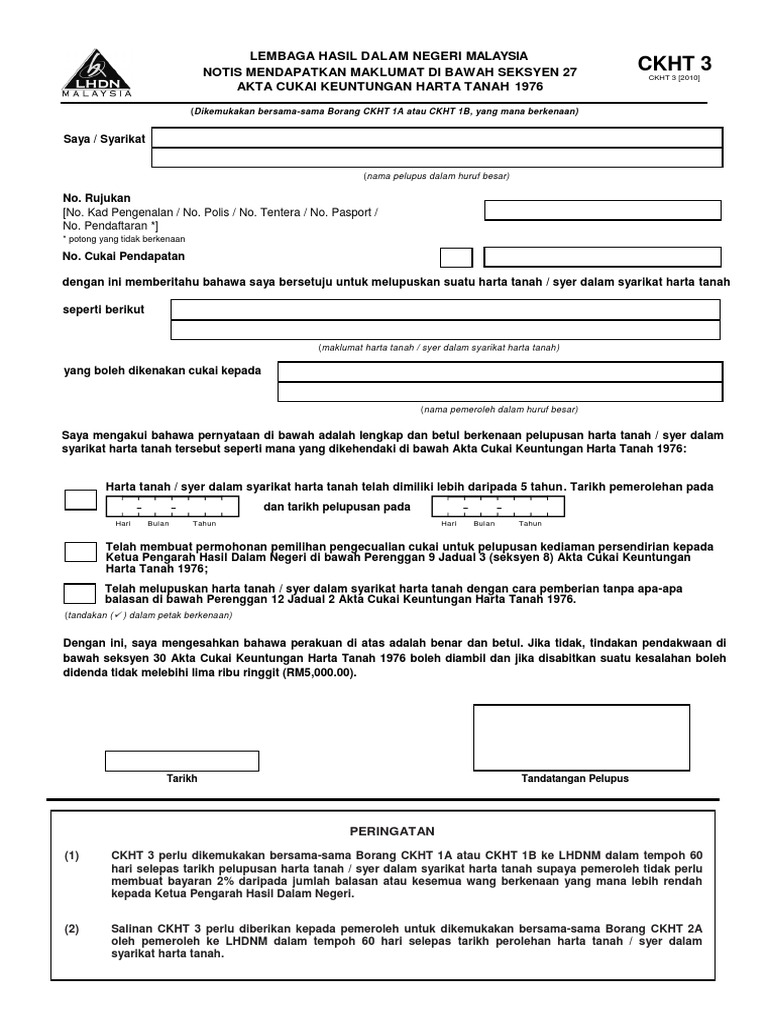Tarikh Akhir Pengemukaan Borang Ckht 2a 60 Hari Selepas Tarikh Perolehan Harta Tanah Syer Dalam Syarikat Harta Tanah Pdf Free Download